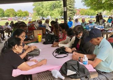 Woolen shawls and caps made by the STC members were donated to the Tuxedo court Tamil seniors during Christmas time